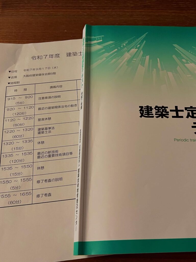 3年に一度義務付けられている、一級建築士の定期講習です。