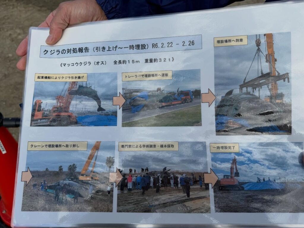 2年前大阪湾に迷い込み、死んでしまったあと引き揚げられて大阪府港湾の土地に埋められた、クジラの掘り起こし。 寒いなか吉村知事も立ち会い、報道陣も沢山来られました。 大阪市立自然史博物館で標本として組み立てられ、展示される予定です。